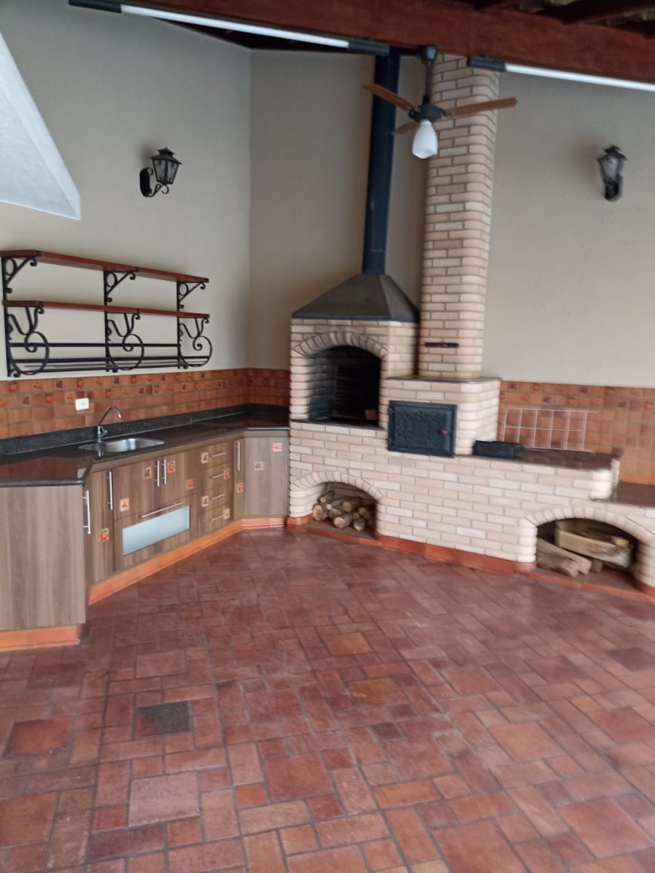 - Espaço gourmet com churrasqueira, forno e fogão a lenha.