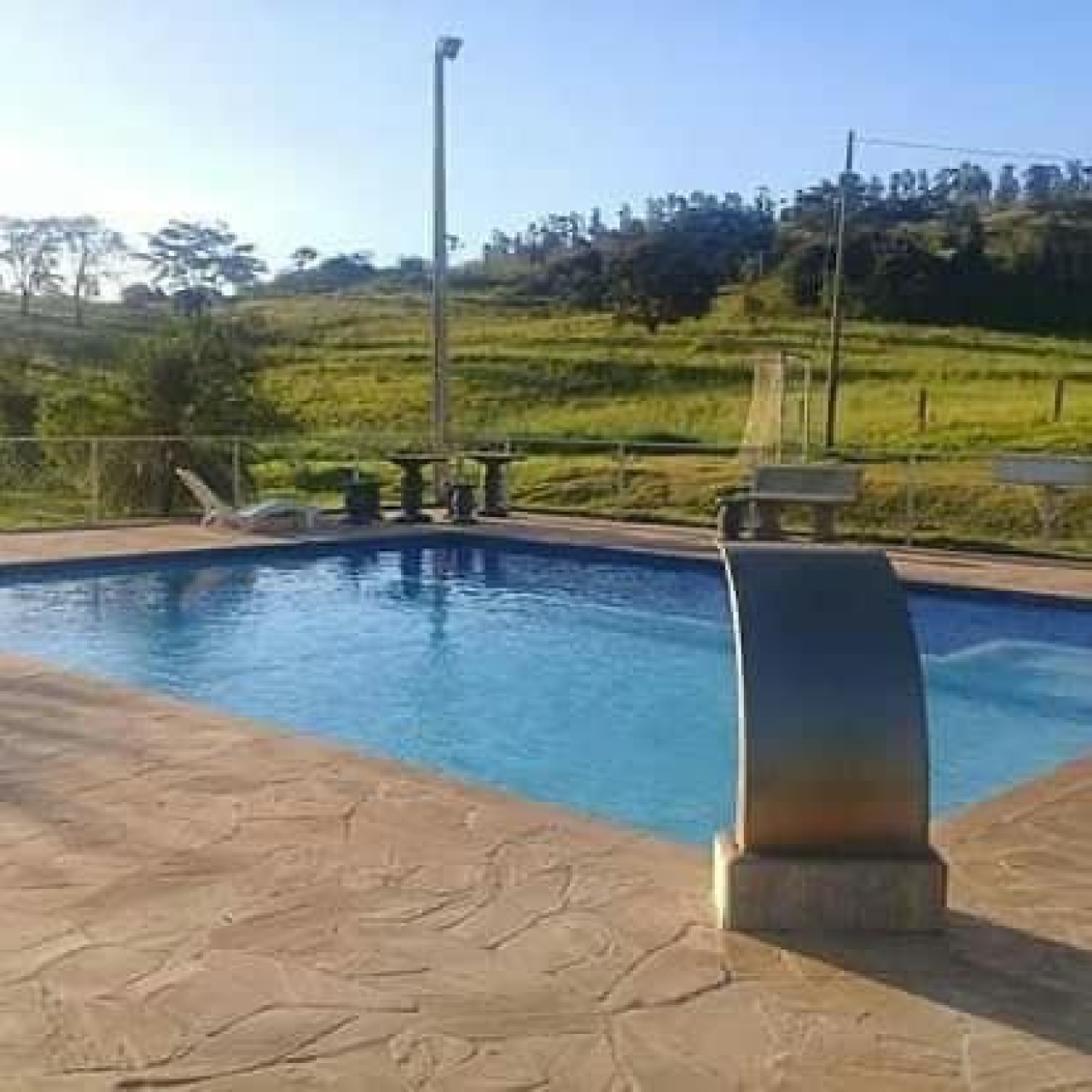 * Lazer Completo: Piscina grande com cascata, deck com vista para o açude, quiosque com churrasqueira ao lado do açude.
