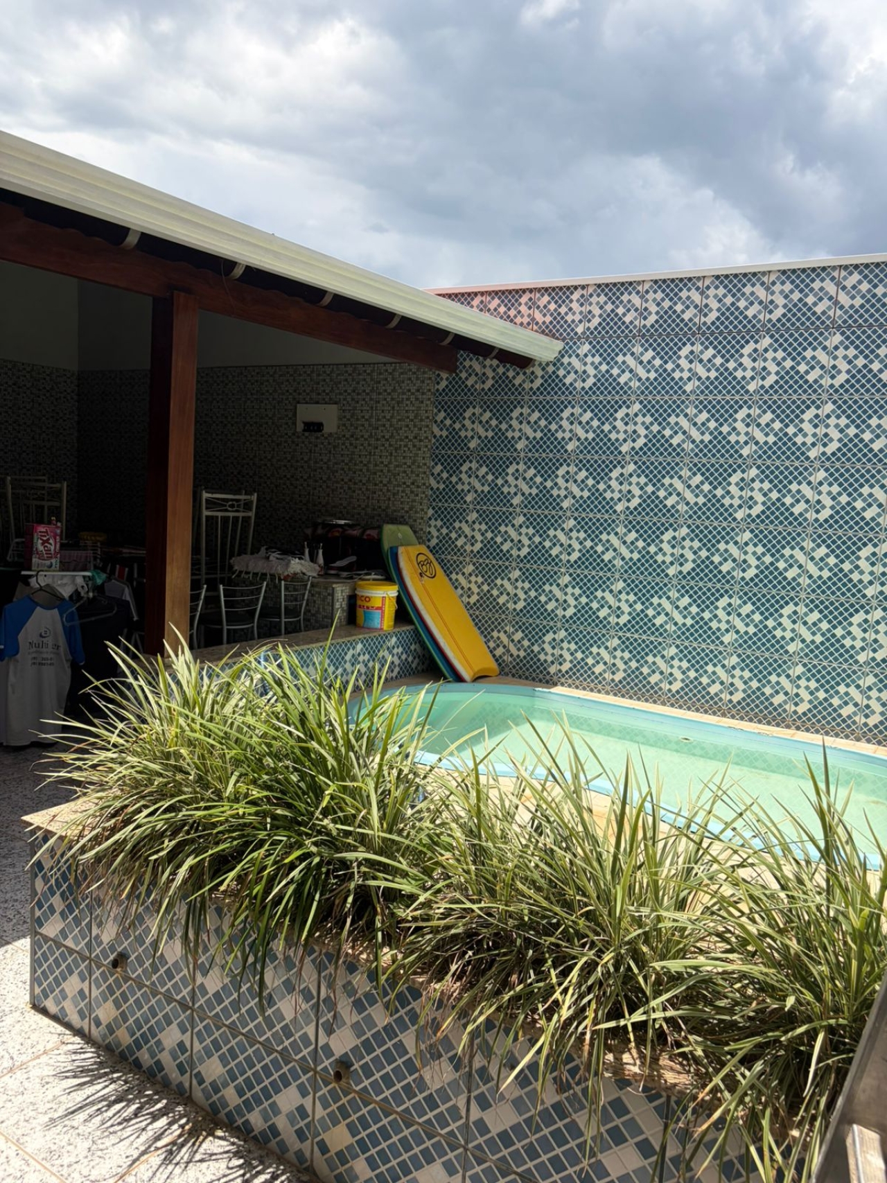 - *Área Externa*: Piscina e garagem para um carro.